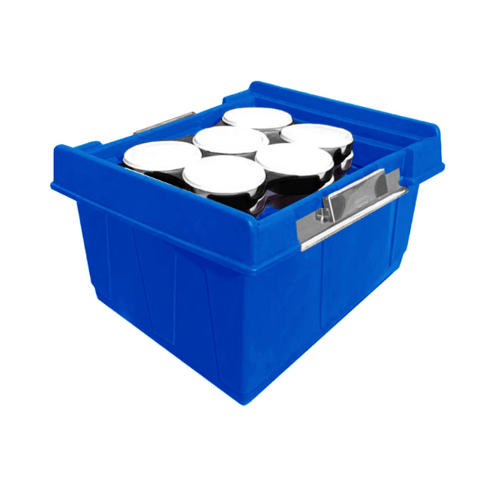 A bandeja contribui para a organização interna das caixas térmicas, melhora a distribuição do peso, facilita o manuseio e auxilia na manutenção da eficiência térmica do sistema como um todo, desde que os alimentos estejam devidamente acondicionados.