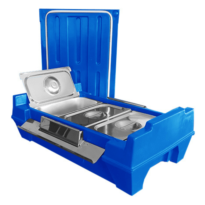 As cubas gastronômicas, suas respectivas tampas, carrinhos de transporte, pallets plásticos e demais acessórios são vendidos separadamente.