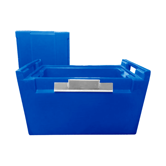 Possui fechos resistentes, alças laterais ergonômicas, que facilitam o manuseio, e estrutura empilhável, permitindo melhor aproveitamento de espaço, organização do ambiente e facilidade logística. Seu design favorece a higienização e contribui para a padronização de processos em cozinhas industriais, centrais de produção, catering, eventos, logística de alimentos e transporte de insumos em geral.