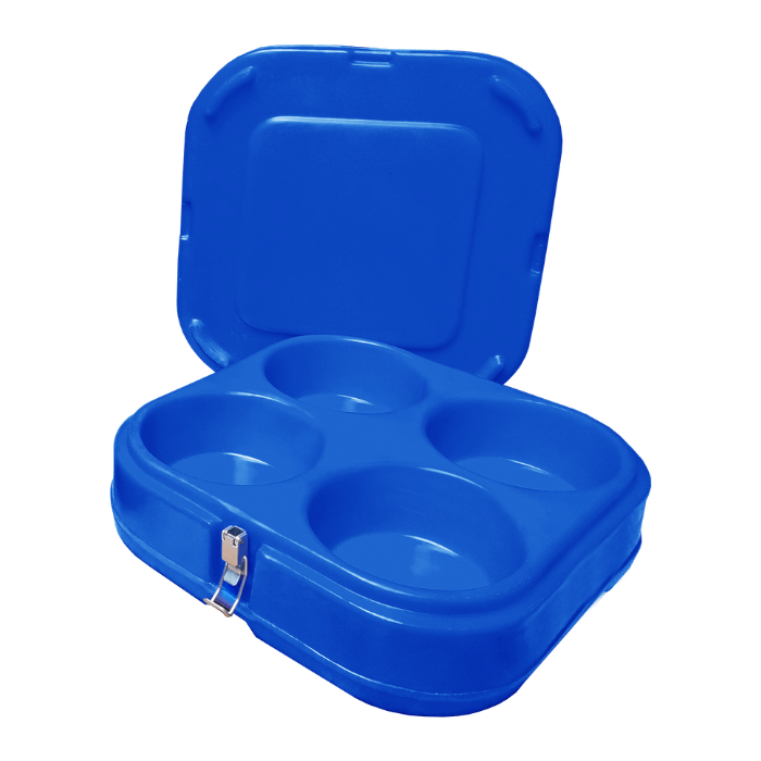 O conjunto funciona por meio de bandeja e tampa, é empilhável, de fácil higienização e ideal para cozinhas industriais, delivery, refeições corporativas, transportes fracionados, catering e operações que exigem organização, segurança e eficiência no transporte de marmitas.