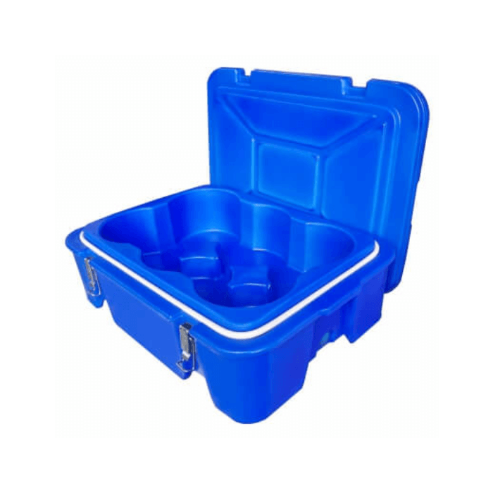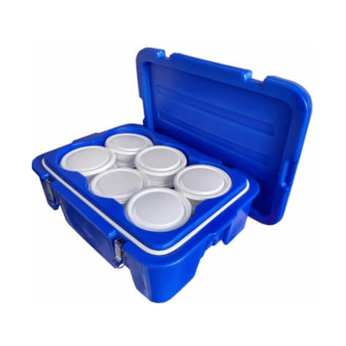 A Caixa Térmica Maxbox Redonda com Fecho é fabricada com materiais atóxicos, resistentes e de fácil higienização, podendo ser utilizada em operações que sigam as boas práticas sanitárias estabelecidas pelas normas da ANVISA, quando aplicada corretamente ao transporte de alimentos devidamente acondicionados.