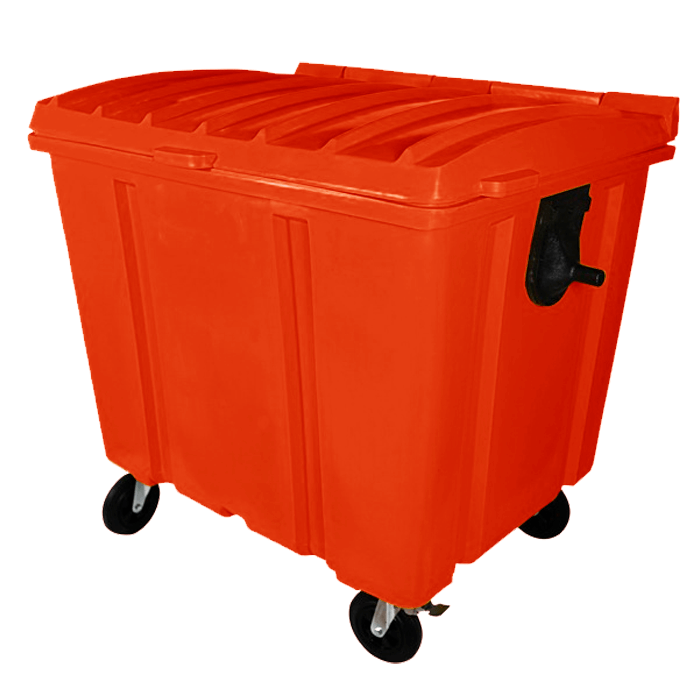 O container conta com tampa articulada reforçada, dreno para escoamento de líquidos e rodízios de alta resistência que proporcionam movimentação segura e eficiente, podendo incluir sistema de travamento conforme especificação.