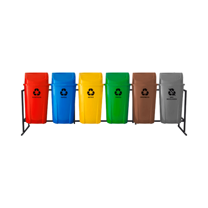 Disponíveis nas cores verde, azul, vermelho, amarelo, cinza, laranja, preta, branca e marrom, permitem a correta identificação e separação dos resíduos conforme as normas da coleta seletiva, contribuindo para a organização e sustentabilidade do ambiente.