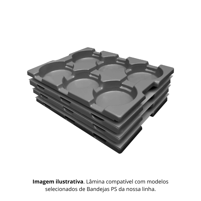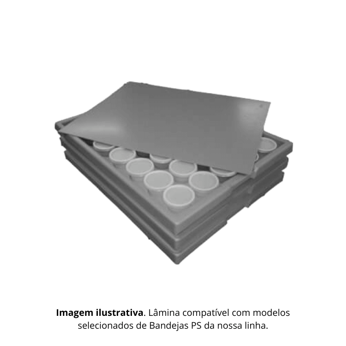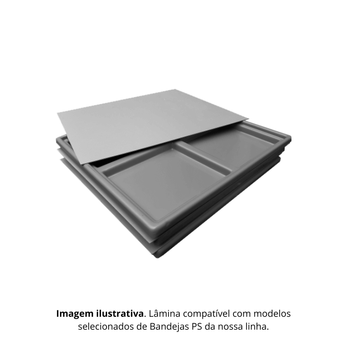 Importante: a lâmina não entra em contato direto com alimentos in natura, sendo utilizada exclusivamente como separador estrutural entre bandejas.